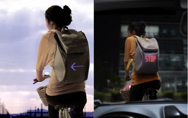 Acesta se monteaza sau poate fi deja integrat intr-un ghiozdan. De ce ghiozdan? Pentru ca designerul corean a presupus ca este un accesoriu nelipsit oricarui biciclist. Panoul cu leduri indica la comanda biciclistului, montata pe ghidon, directia in care acesta se indreapta (stanga sau dreapta) si poate afisa mesajul „STOP” in cazul in care acesta franeaza.