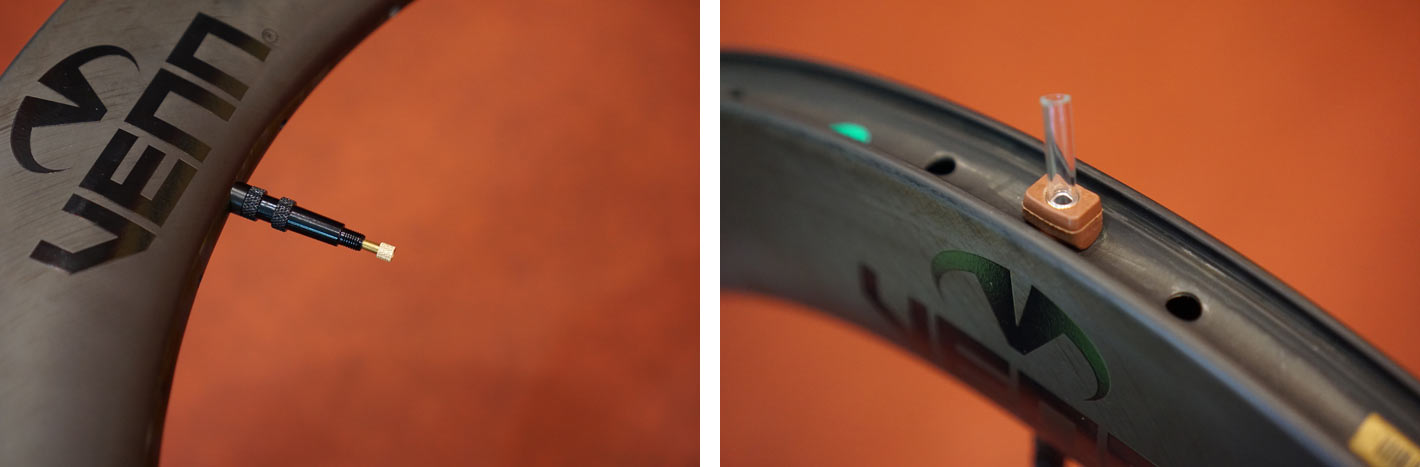 Design-ul include un mic tub atașat pe interior ce nu permite lichidului să intre în valvă și să o blocheze. Iar pentru anvelopele de șosea nivelul lichidului se poate verifica cu ajutorul unei seringi. Orificiul mare permite completarea ușoară cu lichid fără a se demonta miezul valvei.