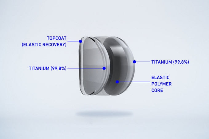 Realist vorbind, bidonul nu e integral din titan ci folosește o construcție laminată, interiorul fiind din titan pur 99.8%, la fel și exteriorul. Între cele două straturi însă se află un miez elastic din polimeri care flexează împreună cu straturile subțiri de titan permițând bidonului să fie comprimat. Partea importantă este că apa nu atinge decât titanul din interior și duza de ieșire care e construită din silicon medical.