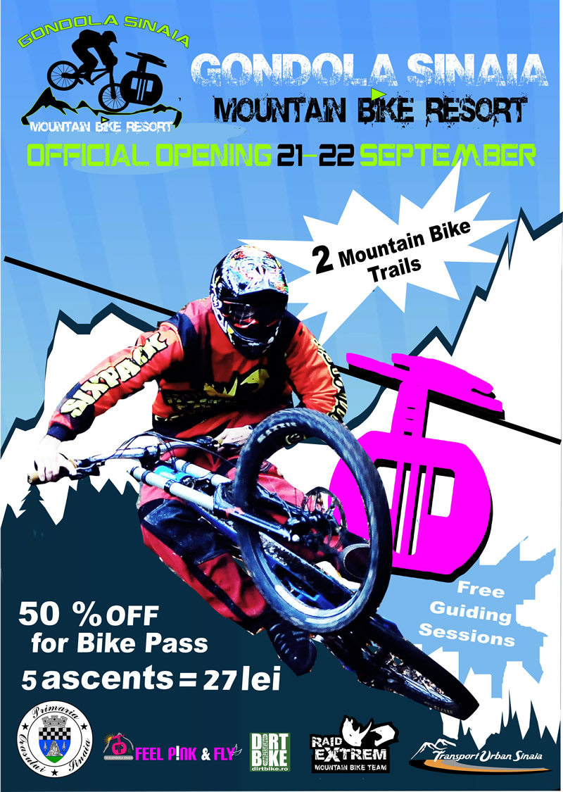 În weekendul 21-22 septembrie, riderii vor beneficia de o reducere de 50% la abonamentele speciale cu cinci urcări. Prietenii noștri de la RaidExtrem Mountain Bike Team, una dintre cele mai cunoscute echipe de pe scena mountain biking-ului autohton, vor fi prezenți la eveniment pentru a organiza sesiuni de guiding gratuite, la solicitarea riderilor care vizitează Gondola Sinaia Mountain Bike Resort. Aceasta este o bună oportunitate de a face cunoștință cu Cezar Băjenaru, membru al team-ului RaidExtrem și Campion Național al categoriei Open 18+ la Downhill, la ultimele doua ediții ale Campionatelor Naționale.