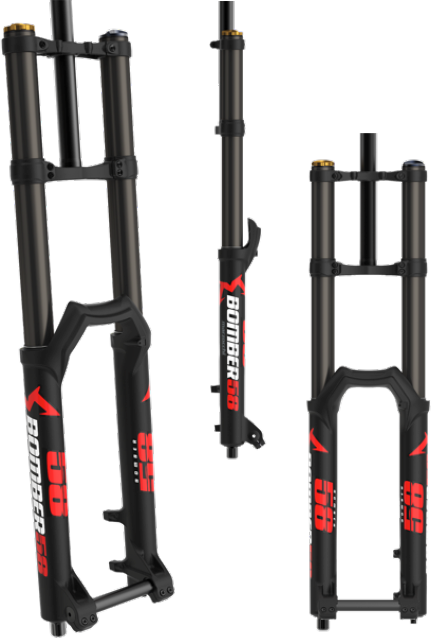 Pe partea de DH, Bomber 58 aduce din tehnologiile lui Fox 40. Disponibilă doar cu șasiu de 40 mm pentru roți de 27.5, furca folosește ax standard 20×110 mm. Va include amortizorul FIT GRIP cu revenire și compresie reglabile și arcul pe aer EVOL cu volum ajustabil prin distanțiere și cu presiunea camerei negative reglabilă.