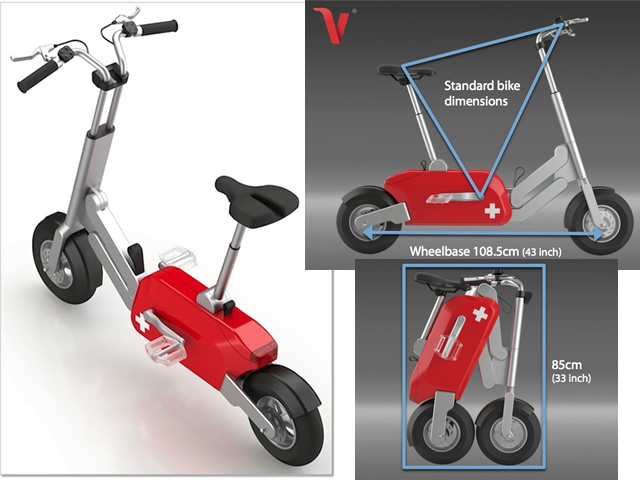 Aceasta este o minibicicletă electrică, inspirată din briceagul Swiss Army. Dimensiunile sale sunt grăitoare în acest sens: lungime de 139 cm și o înălțime de 101 cm. Este dotată cu un motor electric de 250 W care te va asista la pedalat prin oraș, pe distanțe relativ scurte.