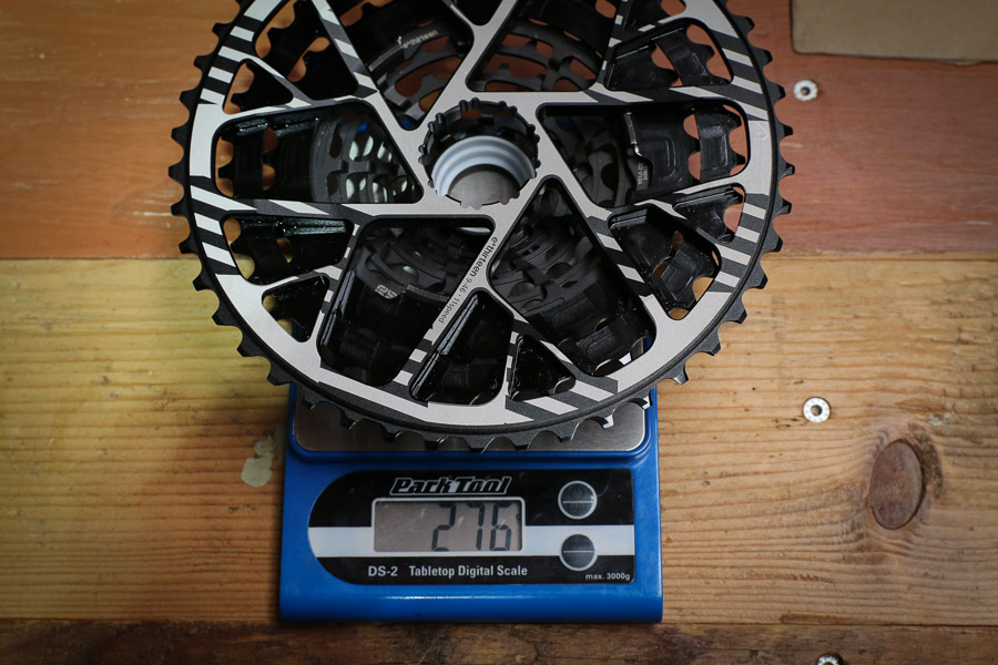 Noua casetă e*thirteen TRS Race are 276 grame, cu 84 mai puțin decât caseta Sram XX1 Eagle. De asemenea pentru a folosi caseta TRS este nevoie de mai puțin lanț și nu este nevoie de un schimbător spate mai mare. Toate astea oferă o reducere de greutate de aproximativ 227 grame decât dacă ai folosi transmisia Sram Eagle.
