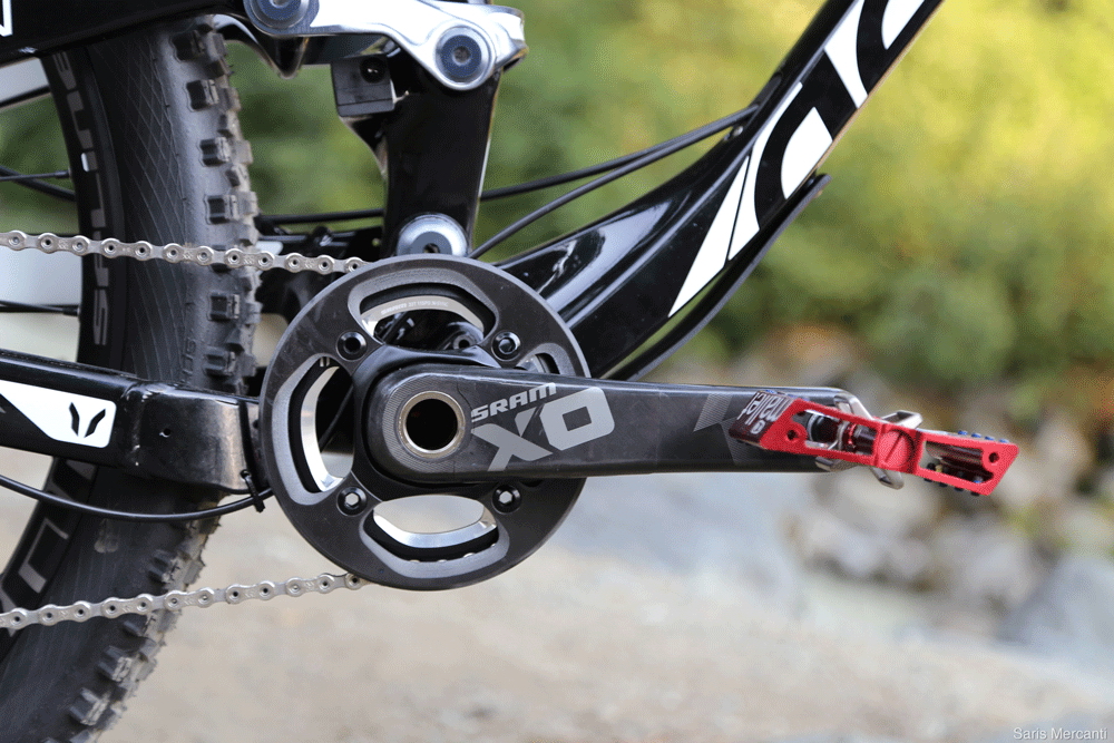 Greutatea totală a noului Spartan din carbon, incluzând inelul protector bash şi pedalele Crank Brother Mallet DH de 470g, este de 14,36 kg.