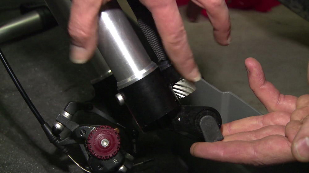 Pentru roata din spate noua bicicletă dispune de o transmisie normală, cu schimbător şi pinioane, iar pentru faţă mişcarea se transmite printr-o serie de cardane şi pârghii direct la butucul roţii. Ideea pare şi bună şi mai puţin bună în acelaşi timp. Pe de o parte vorbim de o greutate mai mare şi de o frecare mai mare la transmisia mişcării. Însă avantajele se pare că sunt mai mari, tracţiunea pe ambele roţi, mai ales că acestea sunt „fat”, oferind o aderenţă de invidiat pe zăpadă.