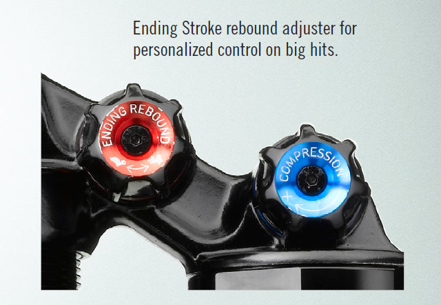Dual Flow Adjust Rebound împarte circuitul de rebound în două: unul pentru denivelările mici și forțele generate de pedalare iar altul pentru denivelările mari și sărituri. Evident, tu ești cel care poate seta cum va funcționa rebound-ul (viteza de revenire). Zgomotul produs de amortizor este acum complet eliminat, rafinamentul amortizării crescând o dată cu aceasta.