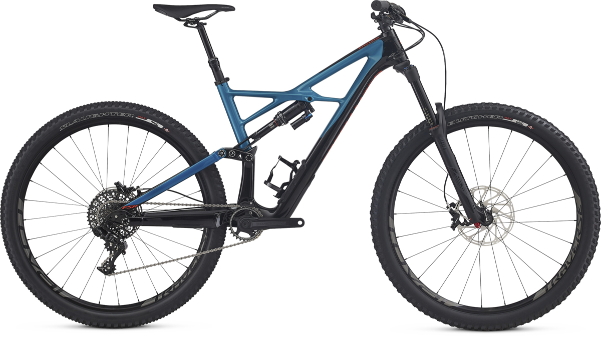 93617-43_END-FSR_ELITE-CARBON-29-6FATTIE_BLK-MRNBLU-RKTREDLa preţul de 4.400 USD modelul Elite are spatele din aluminiu şi faţa din carbon Fact 9 iar transmisia este SRAM GX 1×11.
