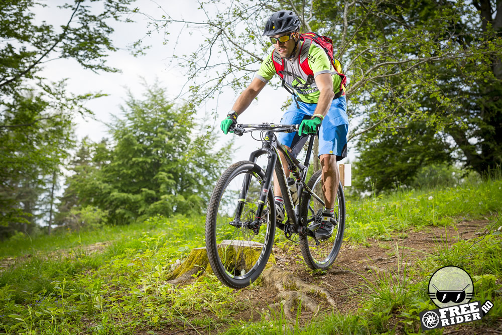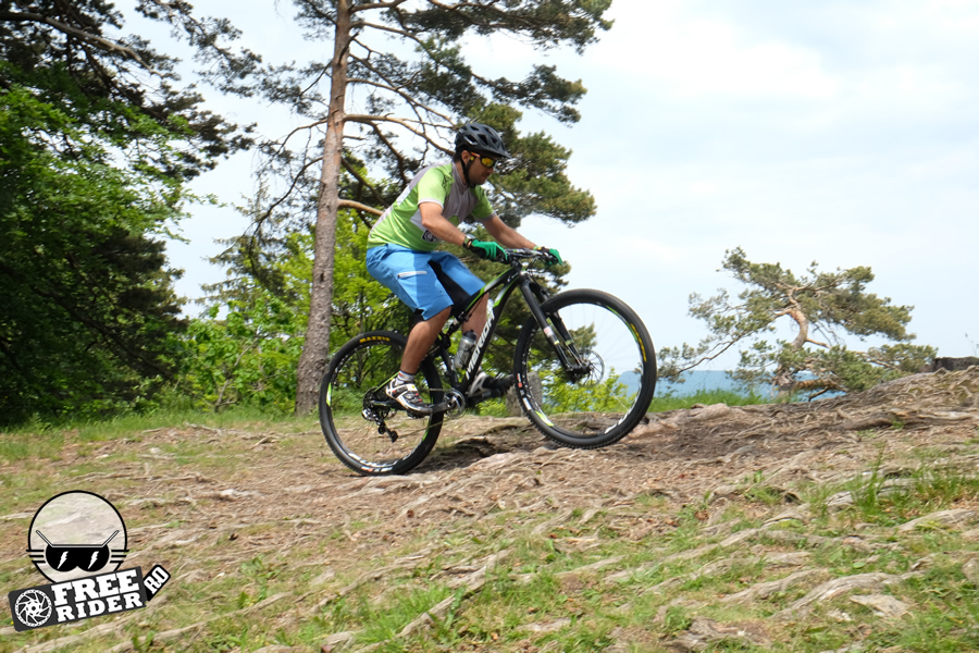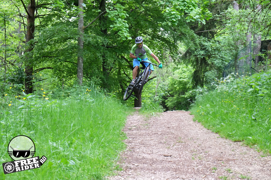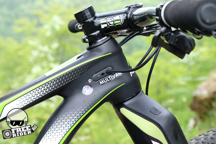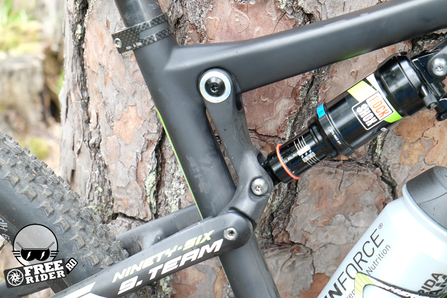 Finisajele se află la cel mai înalt nivel, așa cum era de așteptat de la o bicicletă ce va fi oferită cel mai probabil în clasa de 6.000 de euro. Carbon cât curpinde aș spune, atât pentru triunghiul frontal al cadrului, cât și pentru rocker link sau basculă. Pipa, ghidonul sau tija de ghidon sunt de asemenea pe listă, iar dacă tot am adus vorba de cockpit, un ghidon mai lat ar fi fost ideal pentru a face din această bicicletă o alegere ideală și pentru traseele mai dificile. În fond, ghidonul este mult mai îngust de cât m-aș fi așteptat, mai ales de la o asemenea bicicletă. Iar dacă vrei să-i cauți nod în papură, aș putea adăuga faptul că atunci când vei vrea să acționezi dubla comandă de Lock-out, va trebui să apeși mai tare pe manetă, însă este cam ciudat să afirmi asta.