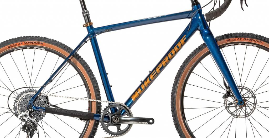 Nukeproof spune că bicicleta e optimizată pentru anvelope fat 700c sau 27.5 Road Plus, dar merge și mai departe, cu dimensiunea maximă acceptată de 700×45 mm de șosea sau 27.5×2.3 și 29×2.1 de MTB, pentru provocări serioase.