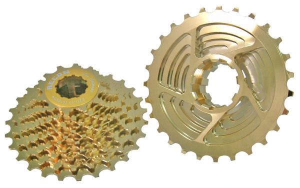 Ai chef pentru un mic tuning al bicicletei? Daca tii la aspectul detaliat al bicicletei tale s-ar putea sa intereseze pinioanele aurii de la Recon MTB. Desi s-ar spune ca auriul nu este cea mai potrivita culoare, sunt foarte multi biciclisti care au decis sa completeze aspectul bicicletei lor cu astfel de componente.