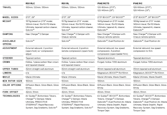 Pike a redefinit standardele furcilor de trail și de enduro. Noul model este cu aproape 150 g mai ușor, folosește amortizarea Charger 2 compatibilă cu blocarea de pe ghidon OneLoc și funcționează perfect cu amortizoarele Deluxe și SuperDeluxe. Noul Debonair oferă o amortizare excepțională a obstacolelor mici pe prima parte a cursei. Cursa este de 160 mm pentru roți de 27.5 și de 140 mm pentru roți de 29, ambele modele având spațiu pentru anvelope de 2.8.