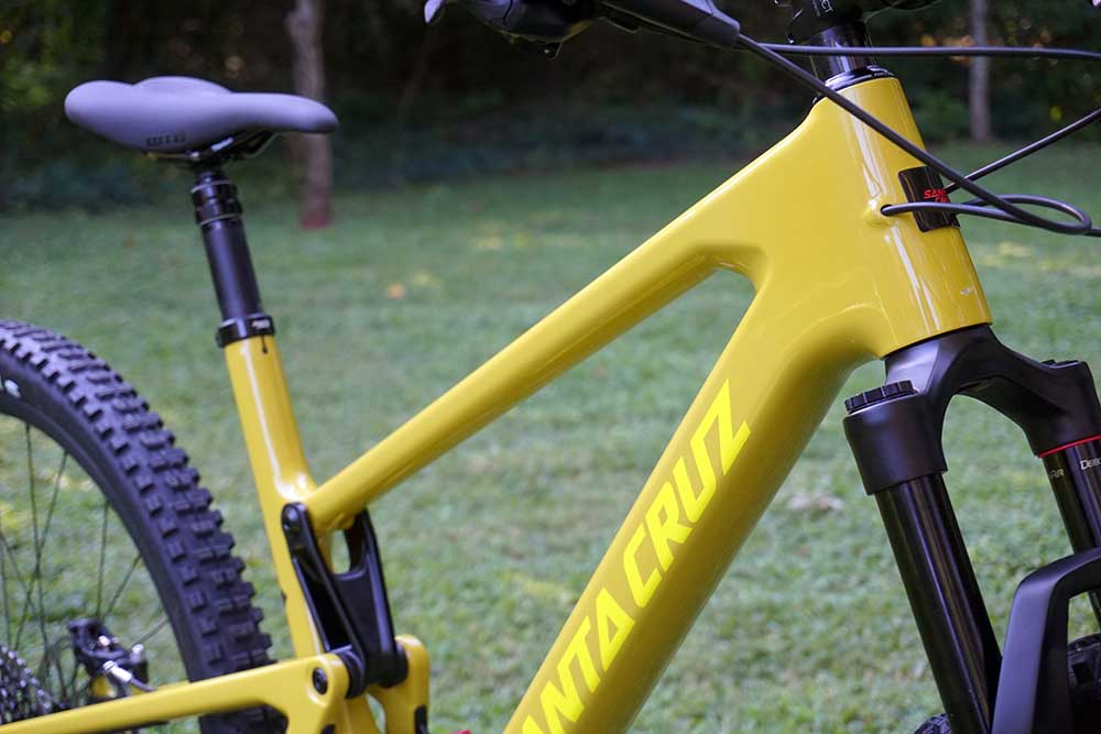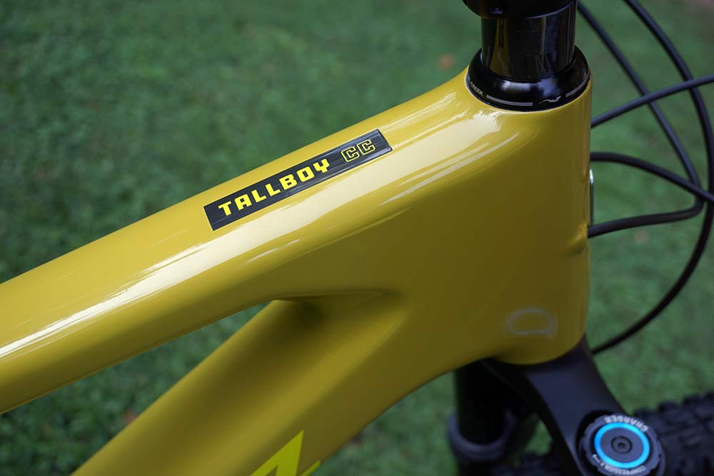 Primul lucru care se observă la noul Tallboy 4 este triunghiul principal foarte solid. Headtube-ul imens și gros și downtube-ul pătrățos dau bicicletei un aspect impunător.