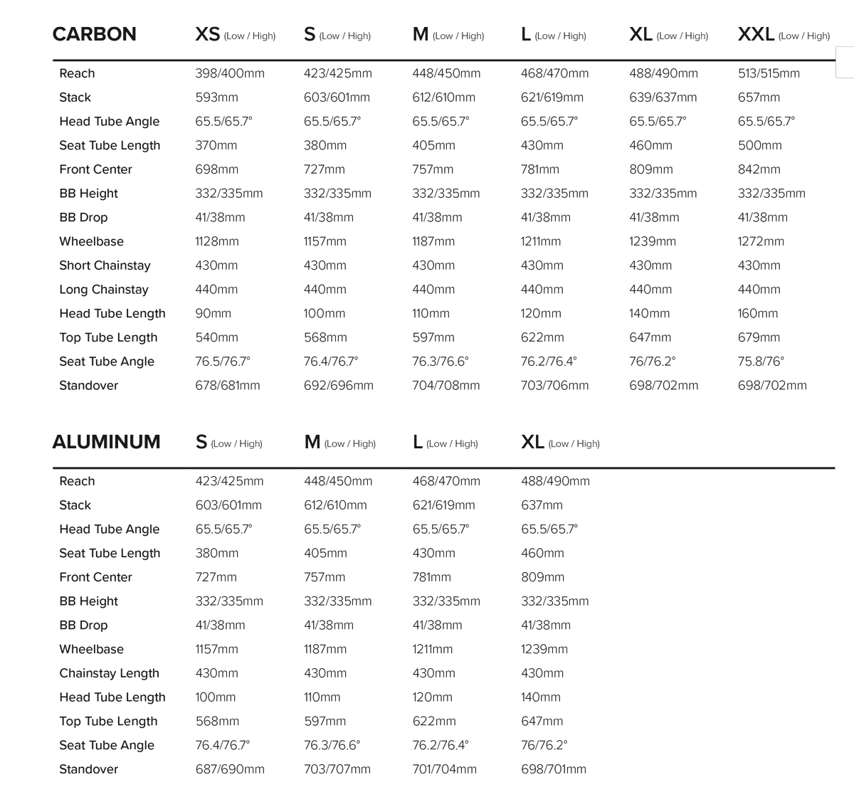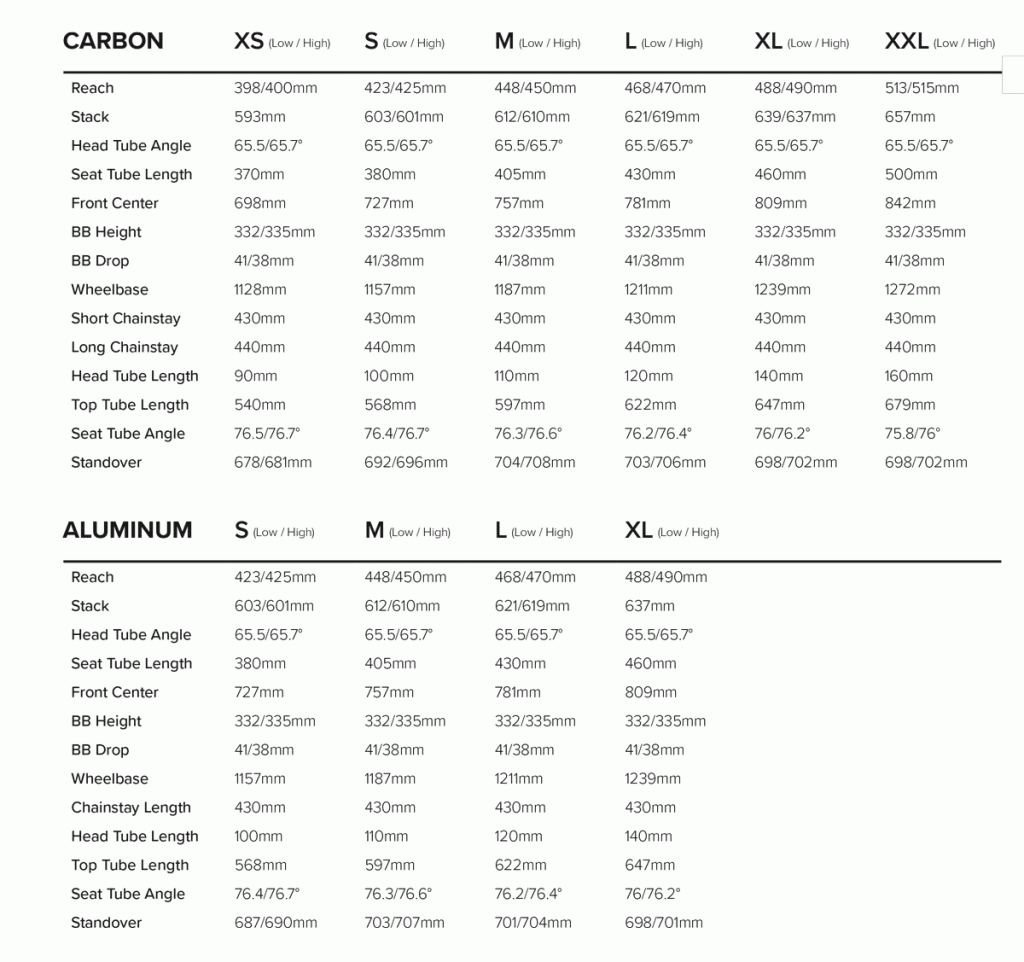 Trebuie remarcat în geometria noului Tallboy unghiul foarte mic al furcii. Acest lucru a fost făcut pentru că și riderii de pe bicicletele cu cursă mică a suspensiei vor să meargă tare pe coborâri. La 65.5 grade în poziția Low și cu doar 0.2 grade mai mare în poziția High, unghiul e din lumea bicicletelor cu cursa de 140-150 mm. Alte biciclete moderne cu cursa de 120 mm au unghiuri între 66.5-67 de grade. Cu chainstay-urile de 430 mm în varianta scurtă, distanța dintre roți e foarte mare, cu aproximativ 36 mm mai mare decât orice altă bicicletă progresivă de trail în mărimea XL.