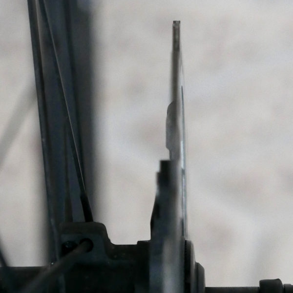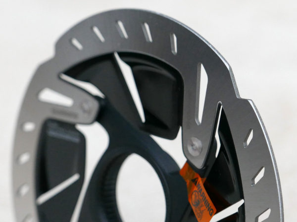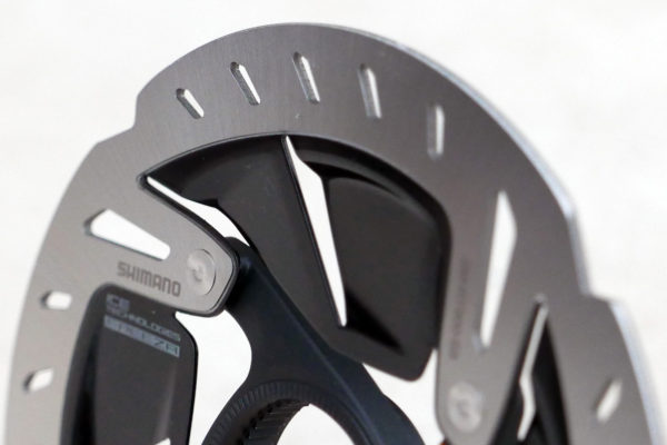 Soluția Shimano a fost de a șlefui marginile pentru a elimina unghiul de 90 de grade, foarte similar cu soluția propusă în toamnă de SRAM. Diferența este destul de subtilă față de un disc standard Shimano. Se poate observa totuși în imagine marginea mai mică de 1 mm șlefuită.