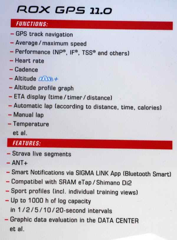 Sigma au introdus Rox 10.0, primul lor computer cu GPS, acum 3 ani. Noul Rox 11.0 este construit pe baza acestuia, dar protocolului ANT+ folosit până acum i se adaugă și BTLE, ceea ce îi permite să comunice atât cu senzori BTLE cât mai ales cu telefonul. Cu ajutorul aplicației Data Center turele se vor sincroniza în timp real, de asemenea fiind disponibile segmente live de Strava și alerte de apel și mesaje (lucru care mie mi se pare foarte util când pedalez).