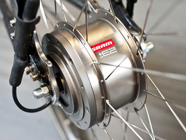 Concurentul principal al japonezilor, SRAM, vine acum cu un butuc cu motor integrat, ce are menirea de a prelua o bună parte din efortul tău la pedalat. Poartă denumirea de E-matic, are două viteze integrate care se schimbă automat în funcție de cadență și poate fi livrat cu acumulatori de 6, 8 sau 10 Ah. Butucul acomodează un singur pinion și oferă o viteză maximă limitată la 24 km/h. Dacă vrei mai repede, va trebui să-ți utilizezi propriile picioare.