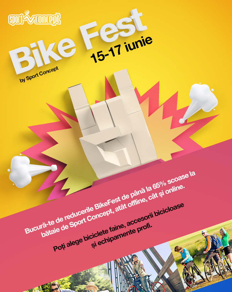 Sezonul a început, iar echipamentul de ciclism trebuie să fie la nivelul așteptărilor. Pentru a veni în ajutorul tău Sport Concept organizează începând de mâine, 15 iunie, un Bikefest în cadrul căruia oferă reduceri masive de până la 65% la aproape toate bicicletele, toate accesoriile de bicicletă și o mare parte din echipamentul de bicicletă. Promoția este valabilă în perioada 15-17 iunie 2016 inclusiv.