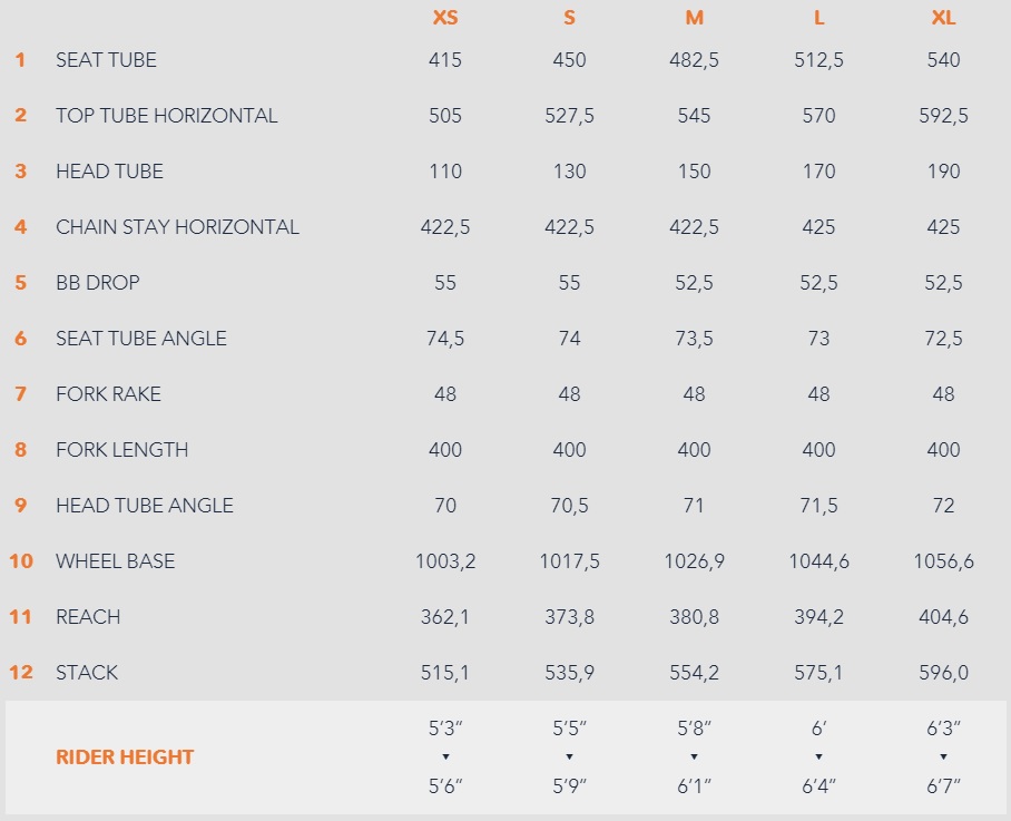 Prețul anunțat pentru Rival Edition este de 3499 Lire în comparație cu 5299 Lire cât costă modelul Force 1. Cadrul este disponibil și separat la prețul de 2349 Lire. Geometria este prezentată în tabelul de mai jos.