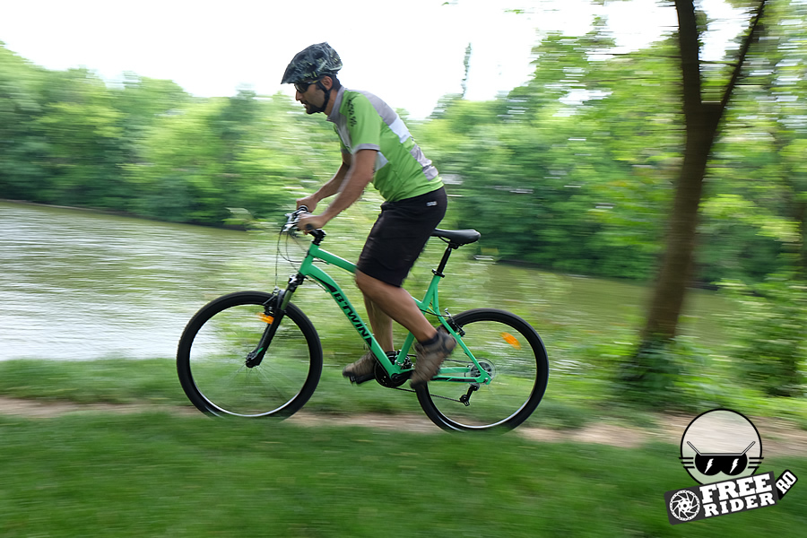 Foile sunt mici, atingi destul de repede viteza de croaziera pe foaia mare si pinionul mic, insa ajungi repede sa simti ca pedalezi in gol si bicicleta nu mai accelereaza. Asta e un lucru deranjat pentru mine pentru ca imi place sa pedalez ca nebunul 😀 – pe viitor o sa schimb angrenajul.