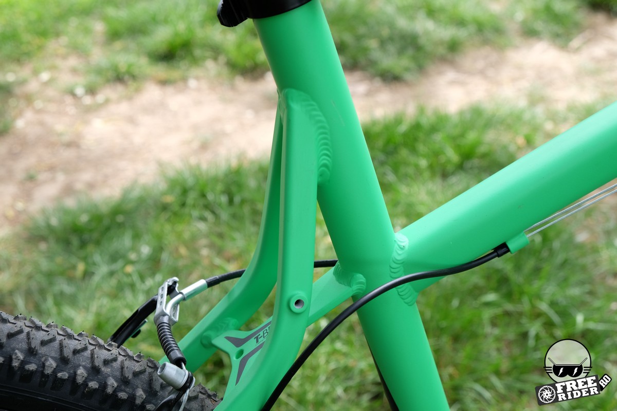 Am dezasamblat bicicleta pentru o analiză în detaliu şi am aflat că greutatea cadrului este de 2,410 kg. Nu este un cadru uşor, iar acest lucru se reflectă în greutatea totală a bicicletei de 14,55 kg. Îţi va fi greu dacă vei fi nevoit să apelezi la push-bike pe un traseu dificil din aceste motive este bine să rămâi la cel mult drumuri forestiere de bună calitate şi cu înclinaţie mică.