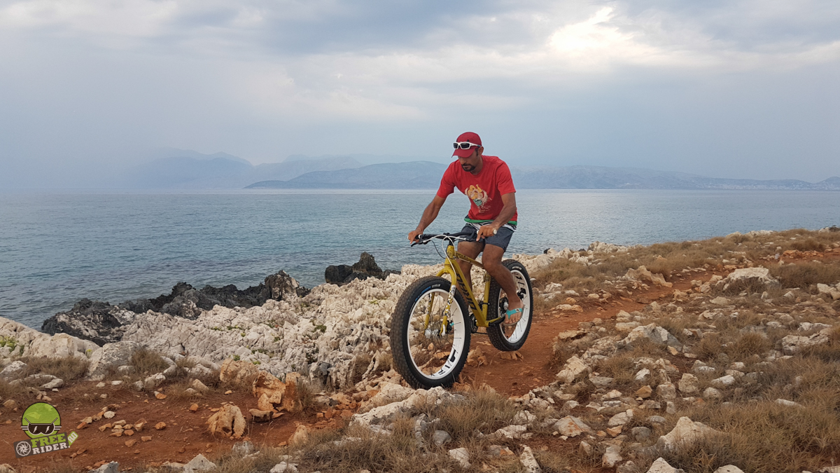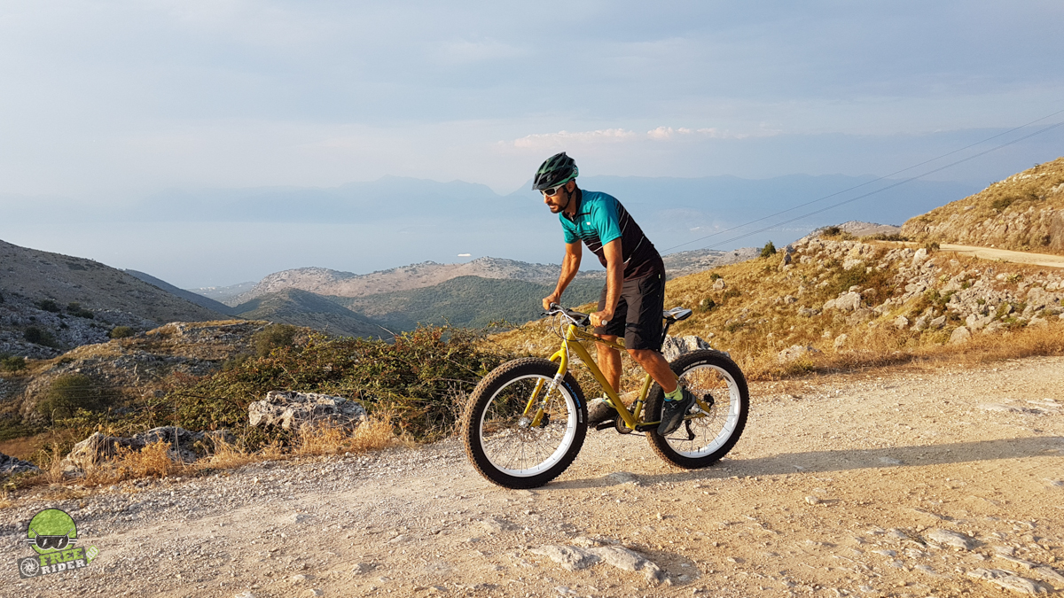 În plus față de drumurile de la nivelul mării, cu altitudine zero, am dus fat-ul și pe înălțimile insulei Corfu, acolo unde am ales să fie “tabara de bază”. Am dat o tură inclusiv până pe cel mai înalt loc al insulei, mănăstirea de pe vârful Pantokrator. Până aici, și de aici înapoi în jos spre mare, am urcat și pe drumul clasic de asfalt, dar și pe drumuri forestiere și poteci.