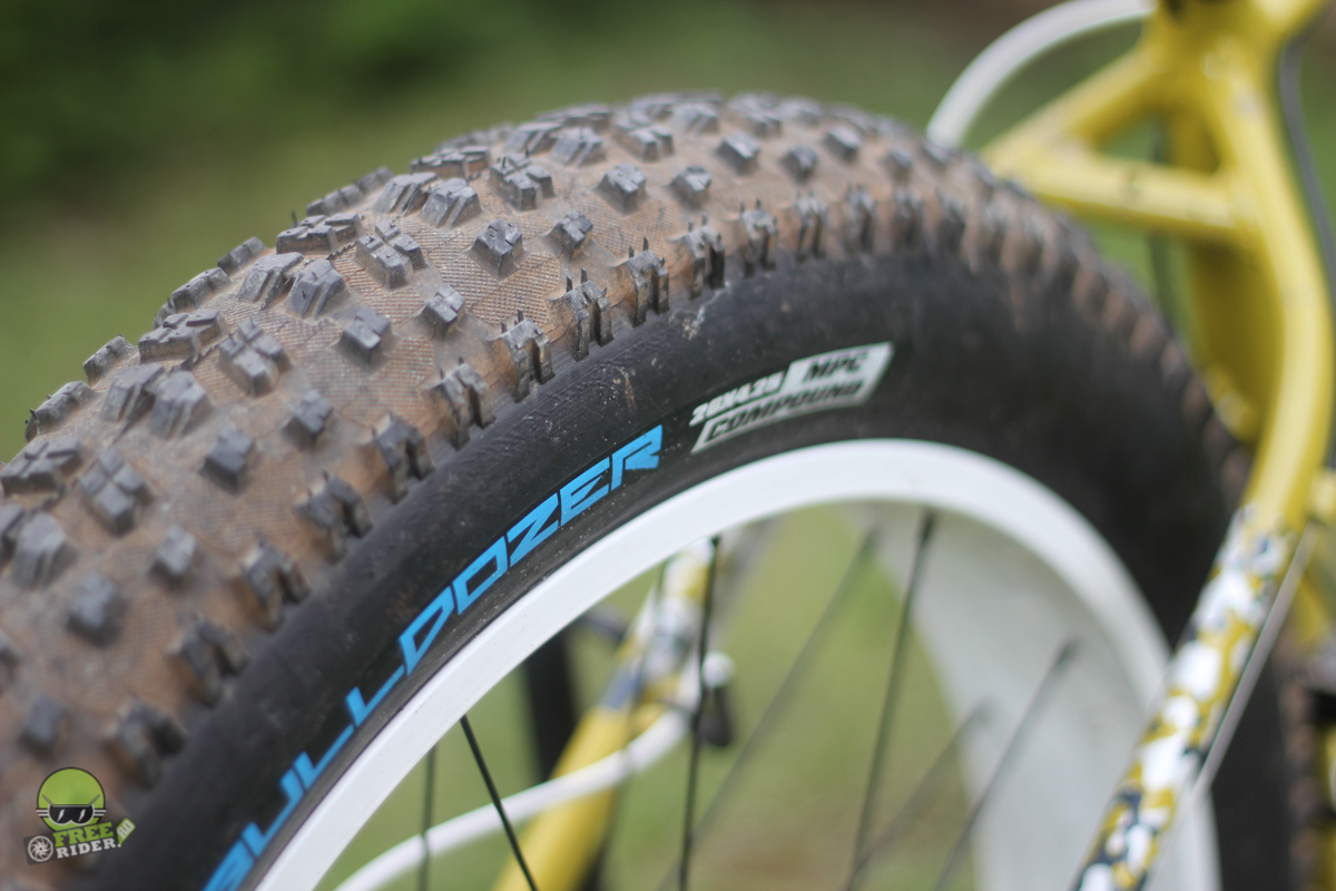 Cum spuneam la început, echiparea nu excelează prin ceva anume. Excepție fac anvelopele. Veetire Bulldozer de 26×4.25 sunt excelente, fiind practic și anvelopele pe care eu le-am ales pentru fat bike-ul meu personal de acasă. La dimensiunea de 26×4.25 Bulldozer-ele sunt mari, chiar dacă azi găsim fat-uri cu anvelope și mai mari, de până la 5.00 și peste!! 4.25 este însă suficient pentru aderență foarte bună pe nisip, chiar foarte bună. Mult mai bună în comaprație cu ce oferă un mtb obișnuit, cu anvelope de 29×2.20 să zicem.
