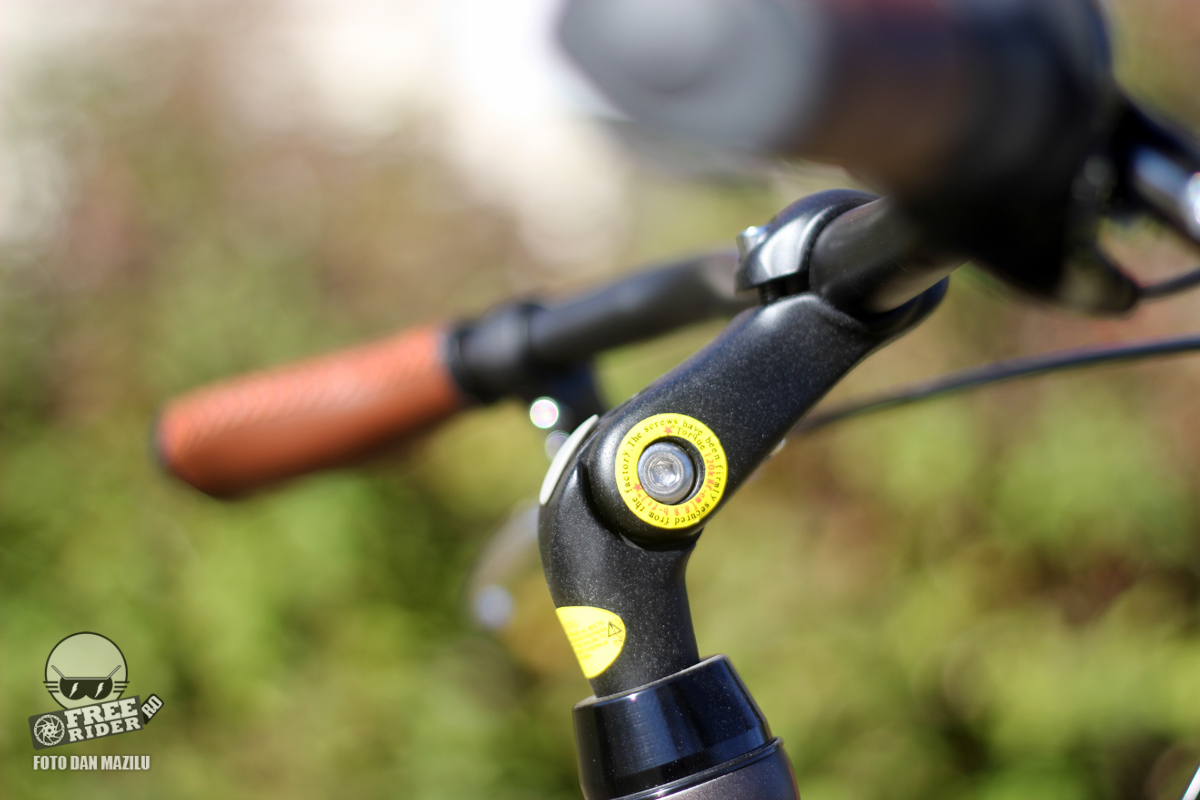 Ce mi-a plăcut la cele două biciclete a fost pipa reglabilă pe înălțime. Este o specificație pe care nu o întâlnești la orice bicicletă de oraș. Mi-a plăcut pentru că dacă voiai, o puteai înclina spre jos și imprima bicicletei o poziție ușor mai „race”, pentru cei care au nevoie de așa ceva. Pe de altă parte din păcate nu am reușit să fac acest reglaj, imbusul respectiv fiind foarte bine strâns.