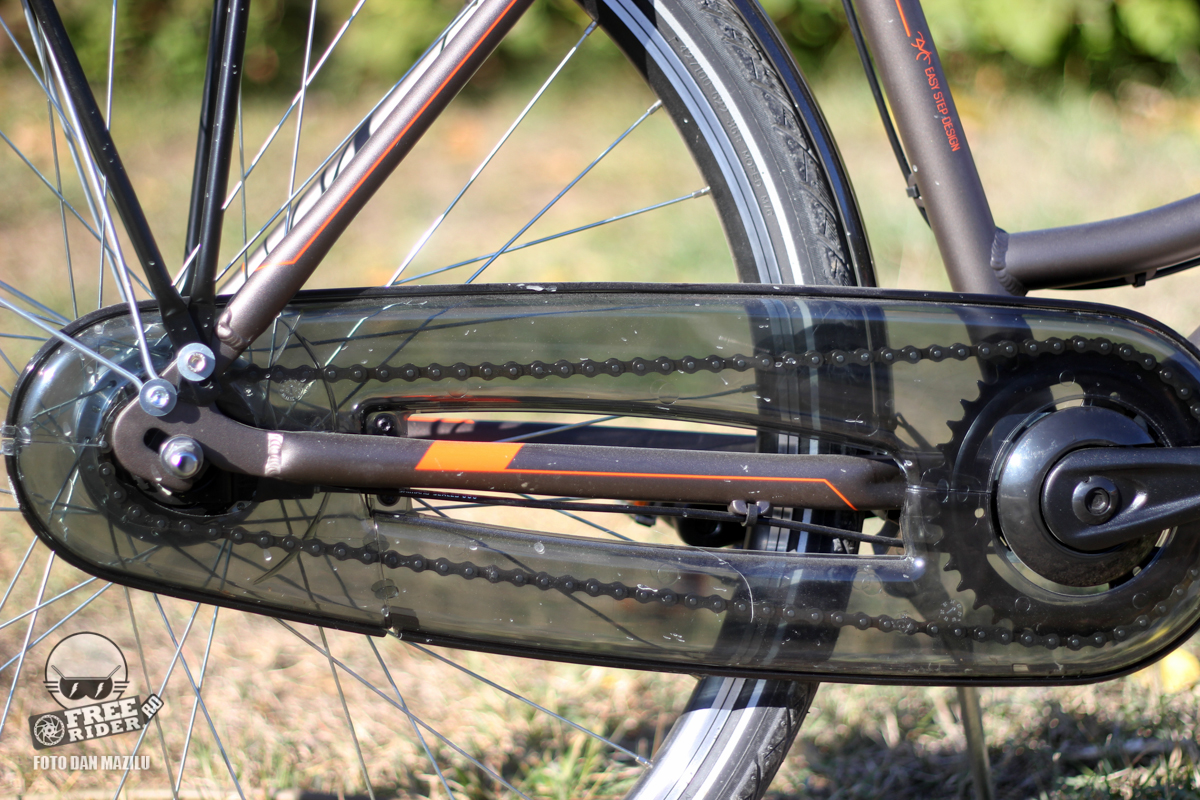Protecția pentru lanț este utilă. Nu arată excesiv de estetic, deși plasticul transparent se vede mai frumos decât la alte biciclete. Însă trebuie să țin cont în primul rând de menirea sa. Fiind instalată, ai garanția că ajungi la destinație cu pantalonii curați.