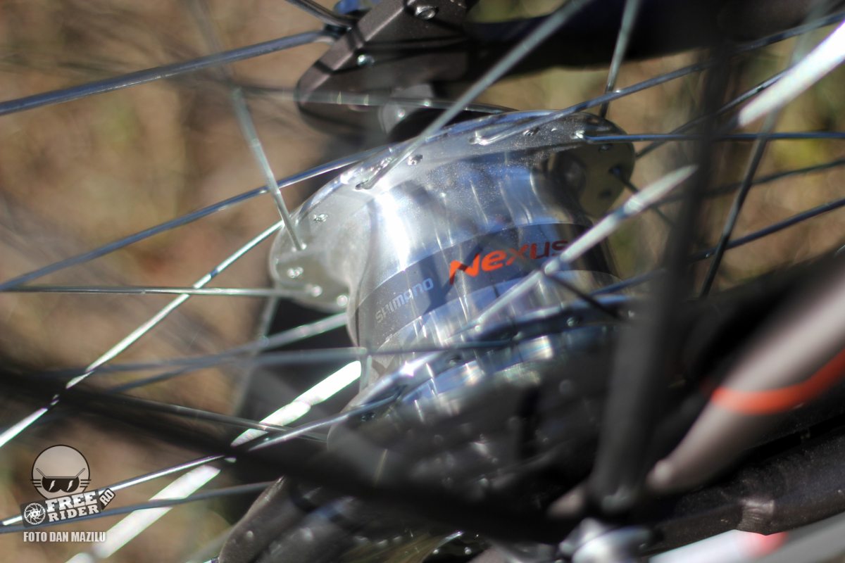 În testele mele am umblat mai mult pe i7 prin București și am găsit bicicleta extrem de utilă. Pe de o parte cele 7 viteze Shimano Nexus înseamnă o trecere mai „fină” între ele. Salturile între viteze sunt mai mici, iar în felul ăsta îți găsești mai ușor viteza potrivită de croazieră. Pe de o parte folosind primele două viteze vei merge extrem de încet, potrivit pentru când te deplasezi printre oameni, să spunem când ești în căutarea intrării unei terase. Pe de altă parte în viteza 6 sau 7 vei merge foarte repede. Am măsurat în jur de 30 la oră dacă ai și o cadență suficient de sportivă. Deci cât se poate de bine pentru a ține pasul cu traficul auto.
