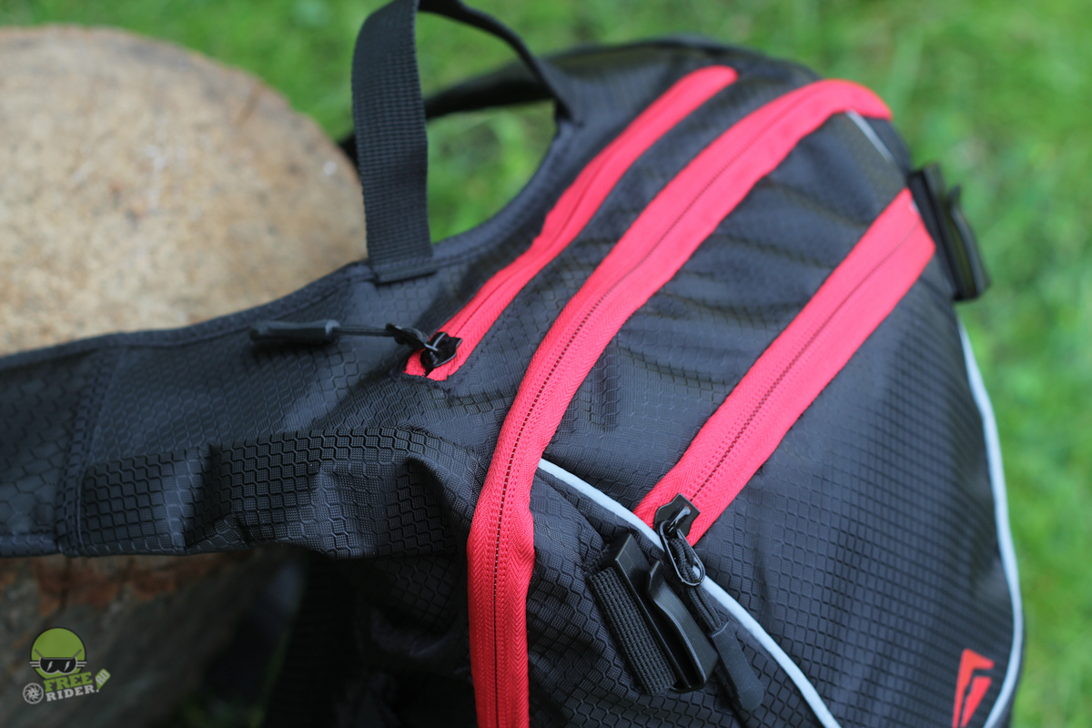 Principalul detaliu pe care l-am apreciat la acest rucsac este că stă foarte bine în spate. Fixat cu cele două chingi, de la piept şi brâu, Merida Fifteen II devine una cu tine şi complet imobil, în felul ăsta putând fi folosit cu succes inclusiv la mtb-enduro, nu doar cross country.