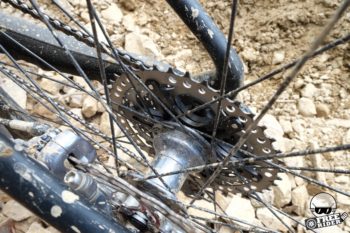 În continuare, oferta celor de la Fouriers rămâne printre cele mai rezonabile de pe piață, pentru a-ți transforma sistemul de transmisie 2×10 sau 3×10 într-un 1×10, dar trebuie să remarc că prețul aproape s-a dublat în decursul unui an. Deși nu sunt singurii, toată povestea cu foaia ovală pe mine unul m-a încântat. Chiar dacă eu nu am simțit în mod special că trag mai tare la deal, urmele lăsate de roata de spate pe traseu au confirmat faptul că există un punct maxim în care ovalitatea foii preia din efortul tău și o transpune sub formă de energie crescută către roată. În ceea ce privește pinionul, acesta are o construcție cât se poate de solidă, iar ca format, rămâne unul din preferatele mele.