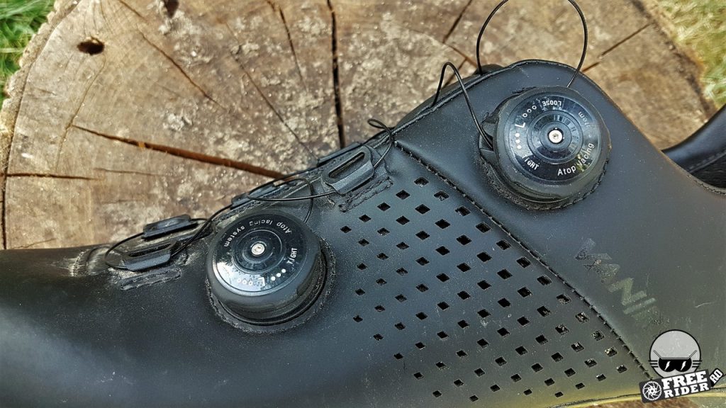 Sistemul de strângere e bun, dar după ce a fost o dată strâns piciorul se mai așează pe poziție, așa că după câteva minute necesită o reajustare. Odată găsită poziția ideală, nu mai e nevoie să se regleze nimic toată tura. La deschidere, rotița se învârte înapoi și dă drumul cablului, dar acesta trebuie tras cu mâna pentru a-l elibera suficient. Sistemul a funcționat perfect multă vreme pe pantofii anteriori așa că mă aștept să nu existe probleme nici la modelul nou.