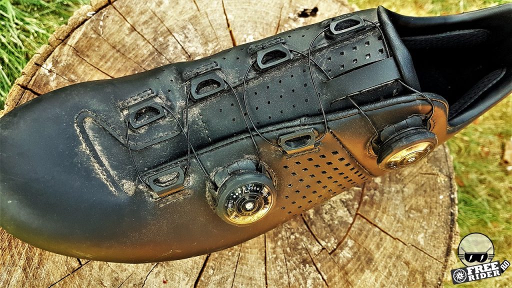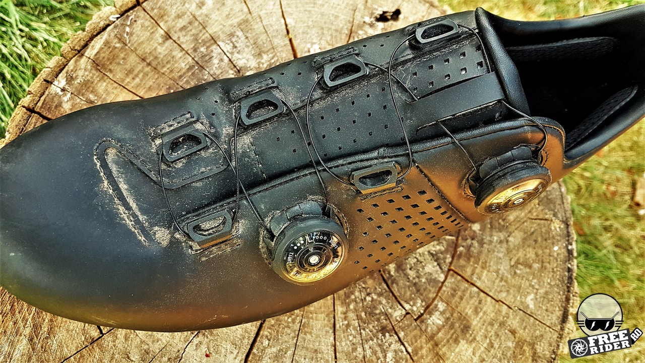 Cred că am reușit să strâng câteva sute bune de km, dacă nu chiar peste 1000 și cu siguranță peste 10.000 m diferență de nivel deja cu acești pantofi, așa că pot să vă prezint o părere destul de competentă despre ei. Talpa, cel mai important element al pantofului, este foarte rigidă și transmite excelent puterea. Măsor puterea cu un senzor în pedală și în momentul în care am trecut la acești pantofi, valorile de putere afișate au început să fie considerabil mai mari la același efort depus, îmi face impresia că poate chiar cu 10 W, în comparație cu modelul anterior. E totuși doar o apreciere subiectivă, nu una măsurabilă. Ce e fără îndoială e că transferul de putere chiar e bun și m-am simțit ajutat de pantofi pe cele mai abrupte urcări unde chiar am avut ocazia să depășesc pante de 20% în câteva ocazii…
