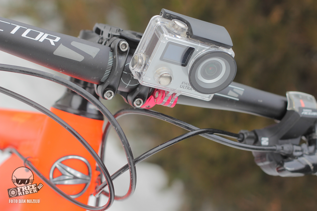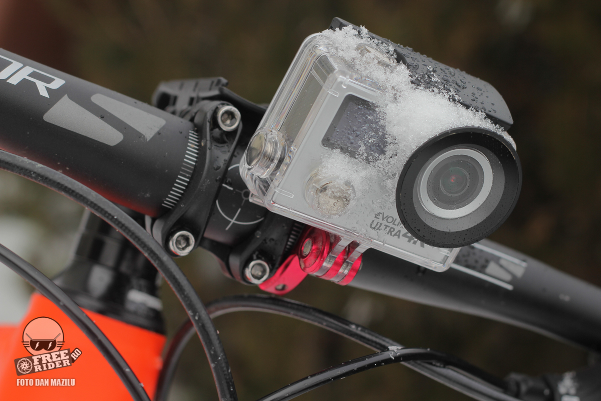 Nu întâmplător am pomenit mai sus de GoPro întrucât la Evolio Ultra întâlnim multe din specificațiile producătorului american, cum ar fi dimensiuni fizice identice sau specificații tehnice similare. Și din punct de vedere al greutății, noua Ultra este mai în regulă în comparație cu GoPro, în ciuda prețului mai mic. Evolio iSmart Ultra 4K are o greutate de 76 grame sau 133 cu tot cu carcasă, în comparație cu 151 g cât are GoPro Hero 4. La ciclism, greutatea mică este întotdeauna apreciată, mai ales atunci când camera este instalată pe o bicicletă performantă din carbon. De asemenea o greutate mică implică și vibrații mai mici atunci când ești pe un traseu de downhill spre exemplu.