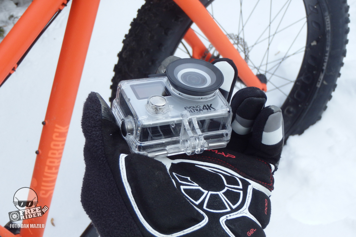 Spre deosebire de camerele de acțiune Evolio pe care le-am mai testat până acum, Ultra dispune în premieră de o telecomandă pe care o poți fixa pe încheietura mâinii, la fel ca un ceas. La început mi s-a părut cam inutilă această telecomandă, ținând cont de faptul că și camera este totuși în raza de acțiune a mâinii tale, pentru a apăsa direct pe butoane. Totuși în timp ce o testam pe traseu mi-am dat seama că nu este chiar în plus. Voi detalia imediat.
