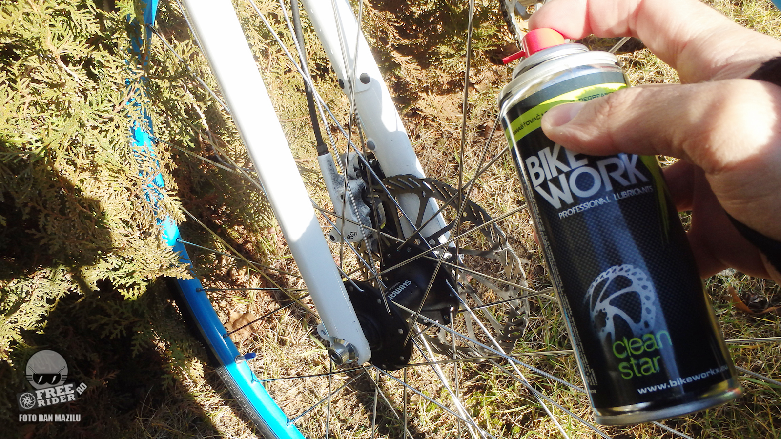 BikeWorkx Clean Star este un degresant creat pentru suprafeţele care se murdăresc repede precum discurile de frână, etrierele, pedalele sau lanţurile. Folosit pe lanţ, înainte de a fi lubrifiat, am observat că acţionează foarte bine lăsându-l destul de curat şi pregătit pentru ungere. Poate fi folosit şi pentru a curăţa pinioanele însă acestea trebuie mai întâi demontate pentru ca degresantul sa nu intre în butuc unde poate să dizolve vaselina. Dacă ai umblat la frâne, le-ai aerisit şi a curs ceva lichid de frână pe cadrul bicicletei sau pe piese, BikeWorkx Clean Star poate fi folosit şi pentru a şterge aceste urme. L-am mai folosit şi pentru a curăţa etrierul de funinginea produsă la frânare de plăcuţe. L-am folosit pe etriere vopsite în alb unde murdăria era foarte uşor vizibilă. După ce am aplicat degresantul şi am clătit cu apă întreaga bicicletă după spălare, funinginea era înlăturată în proporţie de aproximativ 70%. Restul s-a luat uşor cu o cârpă. Degresantul este disponibil în recipient de 200 ml la preţul recomandat de 24 lei.