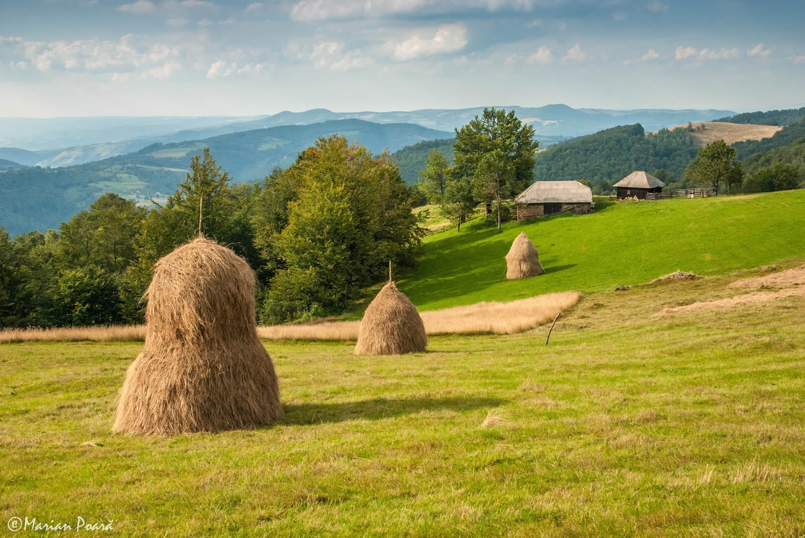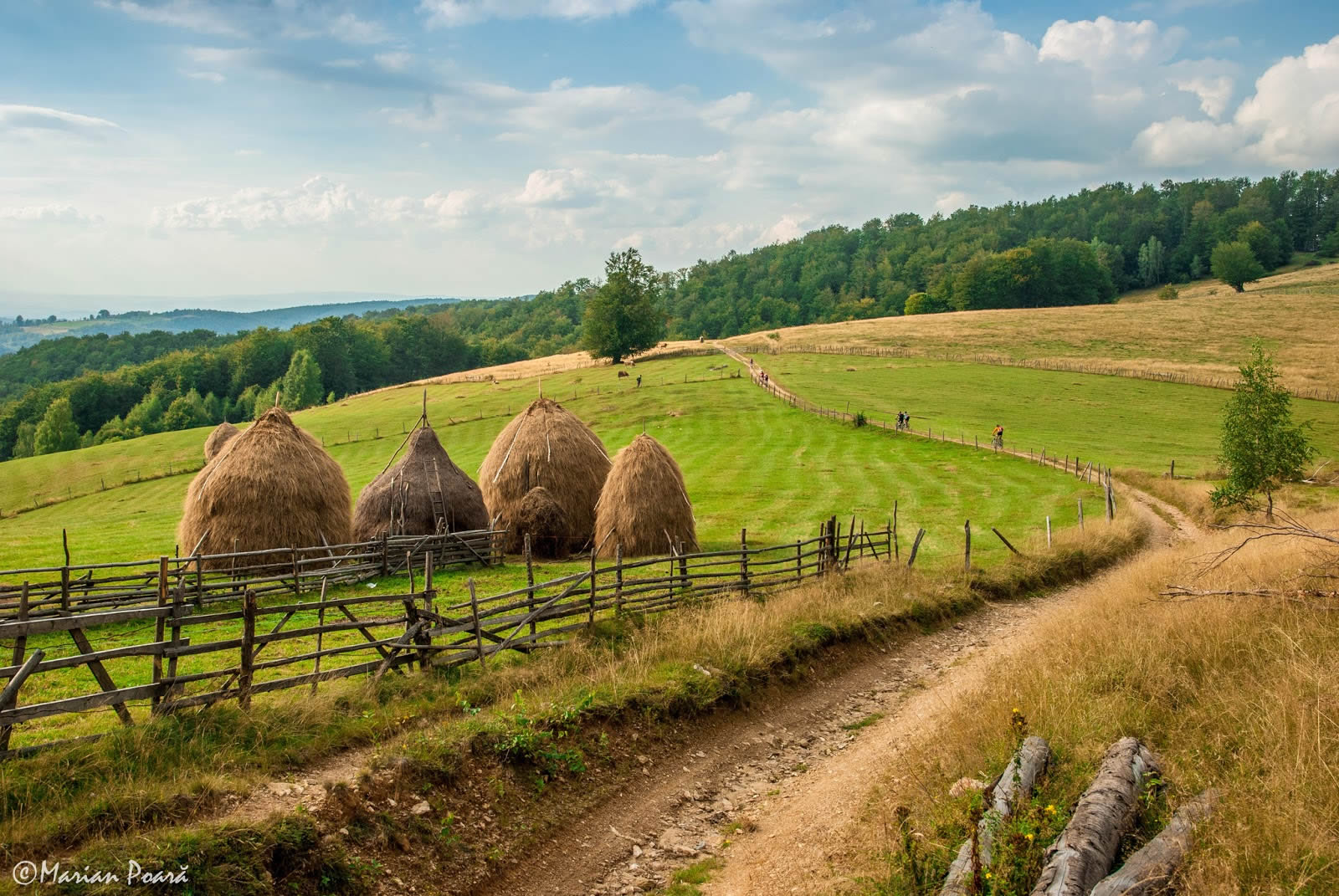 Apoi pornim spre lunga culme ce marchează granița dintre județele Cluj și Bihor. Începem cu un urcuș scurt și abrupt ce se continuă apoi cu un pâlc de pădure, din care atunci când ieșim zările se deschid si putem privi spre platoul vârfului Vlădeasa. Deasupra lui roiesc nori negri destul de neprietenoși și ne bucurăm că nu suntem pe acolo așa cum mă gândisem eu inițial. Copacii din culme însă sunt verzi, dar iarba înaltă e aurită.