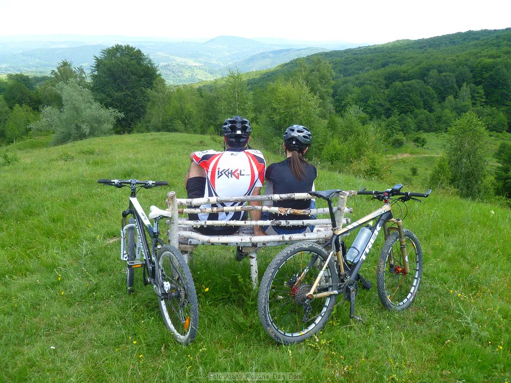 Continuam traseul şi ajungem într-un loc unde, aşa cum spuneam la început, cei mai puţin antrenaţi posibil să apeleze la puţin push-bike însă nu este nimic de speriat, mai ales că acesta se încheie cu o frumoasă poteca prin iarbă, potecă ce urmăreşte curba de nivel. În scurt timp vom ajunge şi în cel mai înalt punct al traseului nostru, la 778m potrivit Google Earth. Dupa care, aproape imediat, vom întâlni o băncuţă pe care ne putem odihni şi admira panorama superbă.